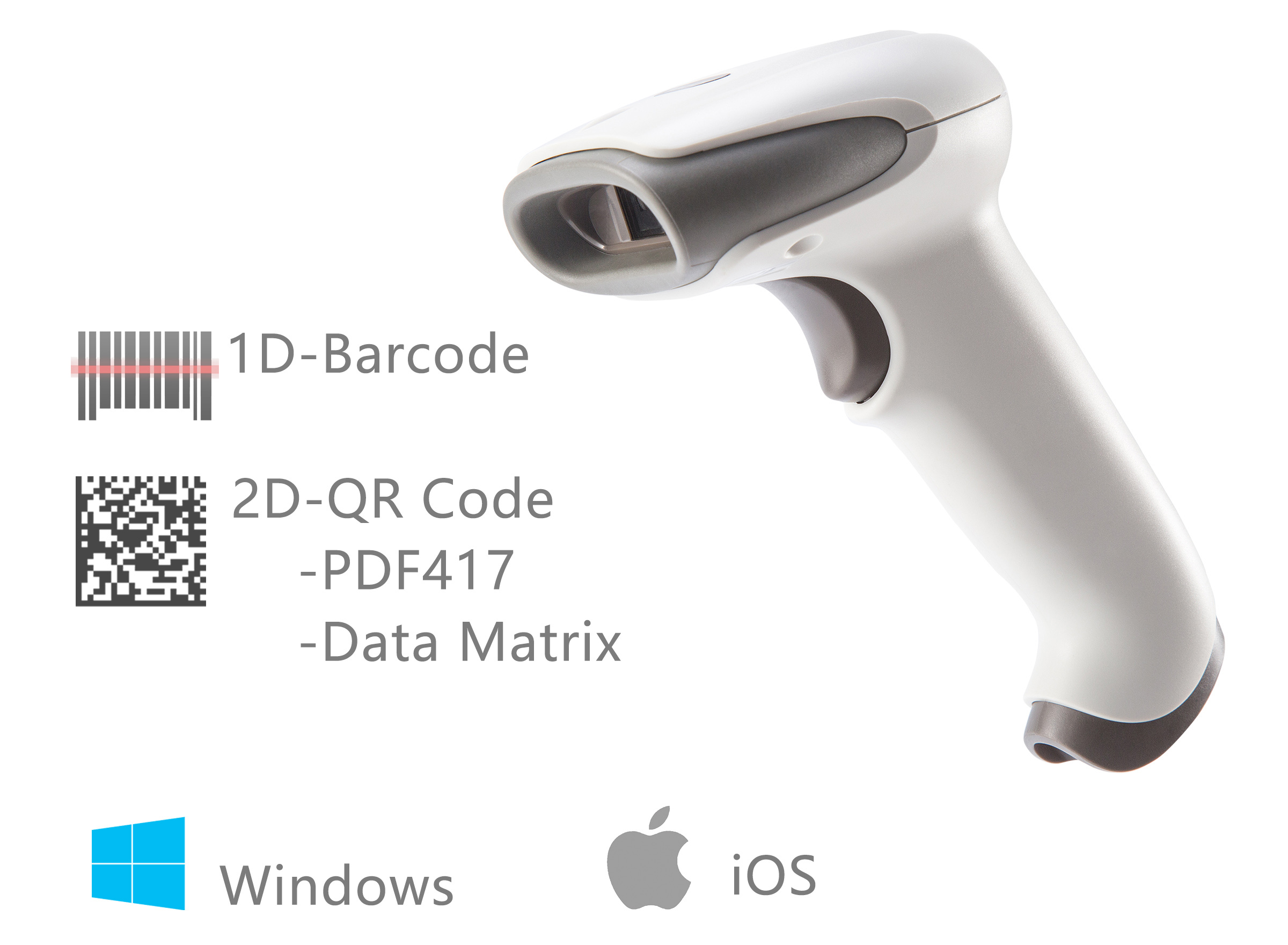 Identification | 1D: UPC/EAN, UPC/EAN with supplementals, Bookland EAN, ISSN, UCC Coupon Extended Code, Code 128, GS1-128, ISBT 128, Code 39, Code 39 Full ASCII, Trioptic Code 39, Code 32, Code 93, Code 11, Matrix 2 of 5, Interleaved 2 of 5, Discrete 2 of 5, Codabar, MSI, Chinese 2 of 5, GS1 DataBar variants, Korean 3 of 5, ISBT Concat 2D:PDF417, MicroPDF417, Composite Codes, TLC-39, Data Matrix, Maxicode, QR Code, MicroQR, Aztec |